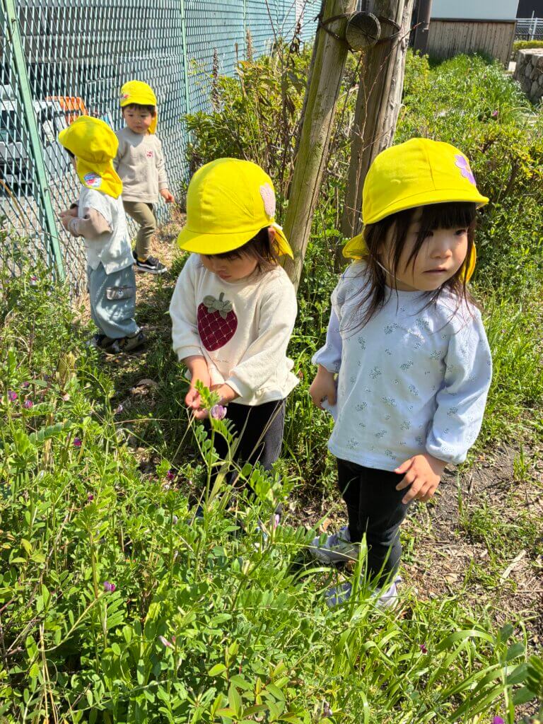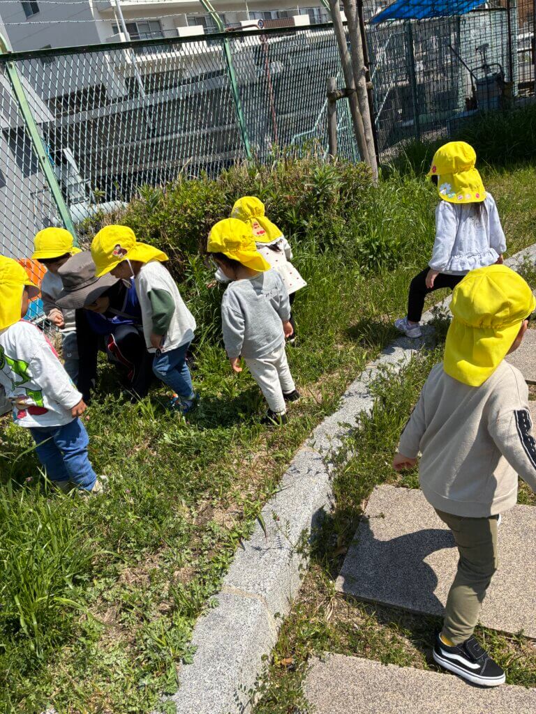 虫を探します。てんとう虫、ダンゴムシいるかな??