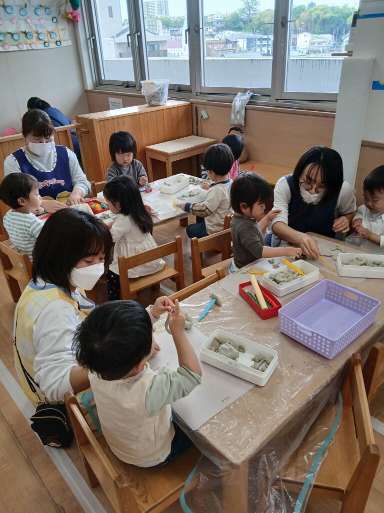粘土で遊びました。恐竜、カメ、いろいろ作りました。