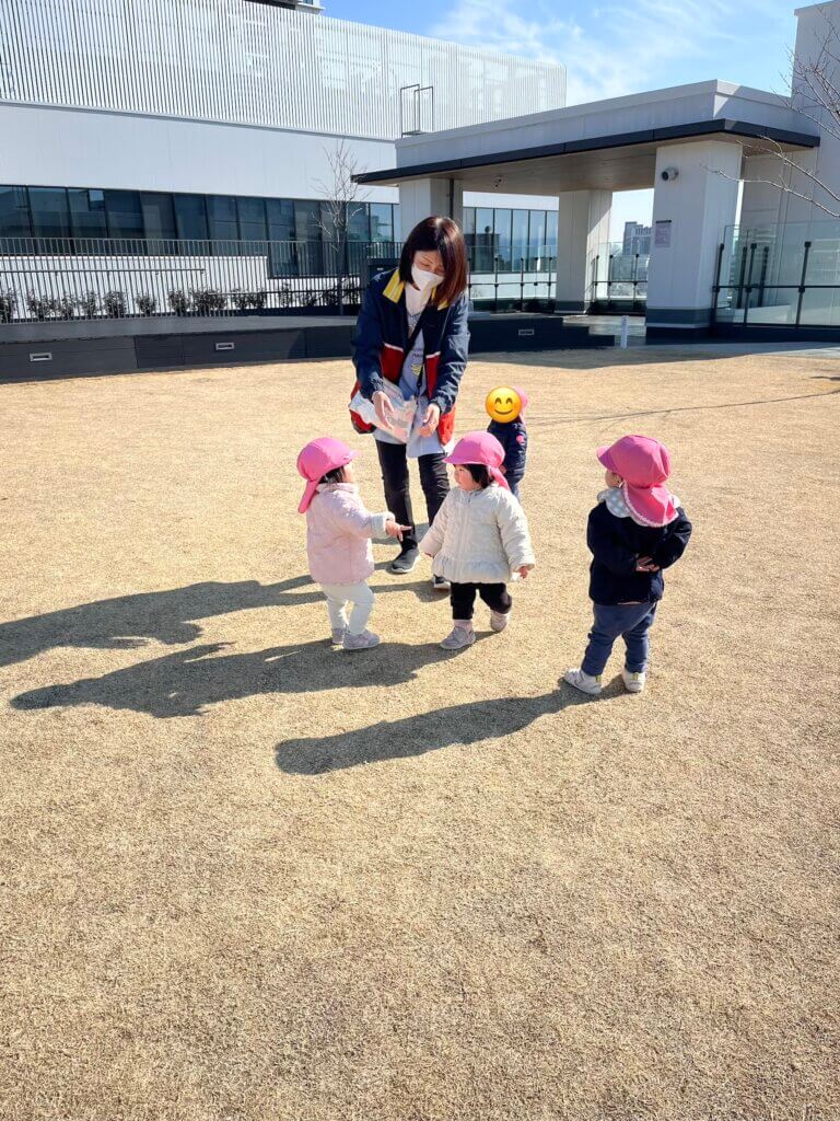 色々な物をお友だちと見つけて拾って楽しんでいます。