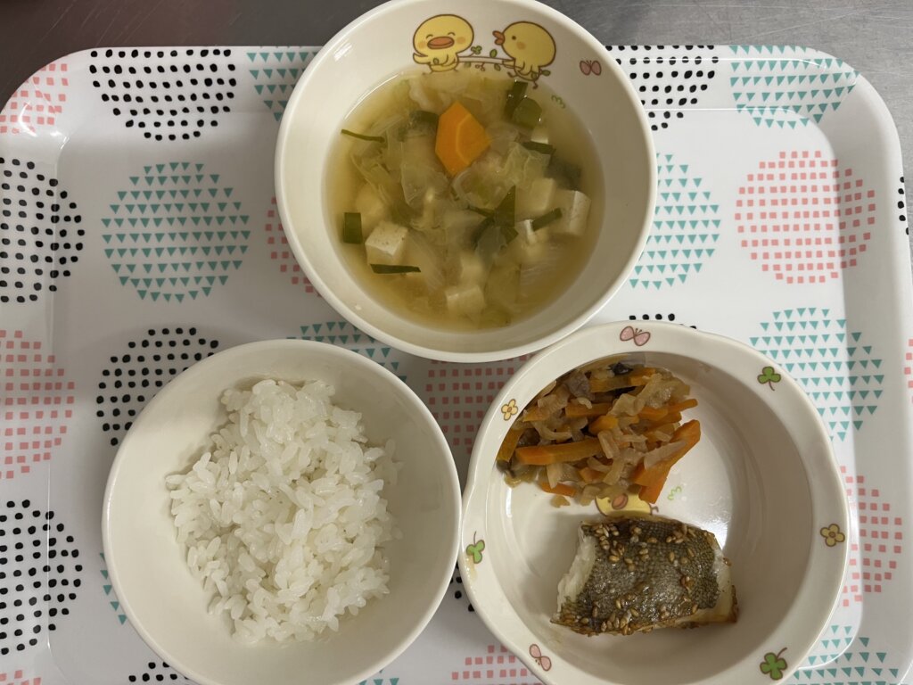 中期食お粥煮魚豆腐のみそ汁 後期食ご飯煮魚豆腐のみそ汁 幼児食ご飯焼き魚のごまだれ切干大根の煮物豆腐のみそ汁 -